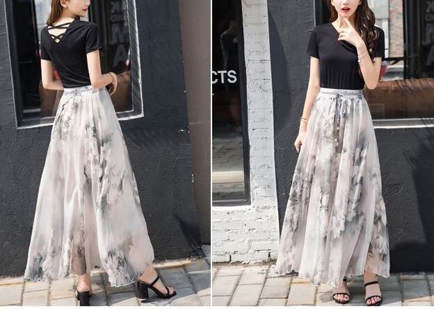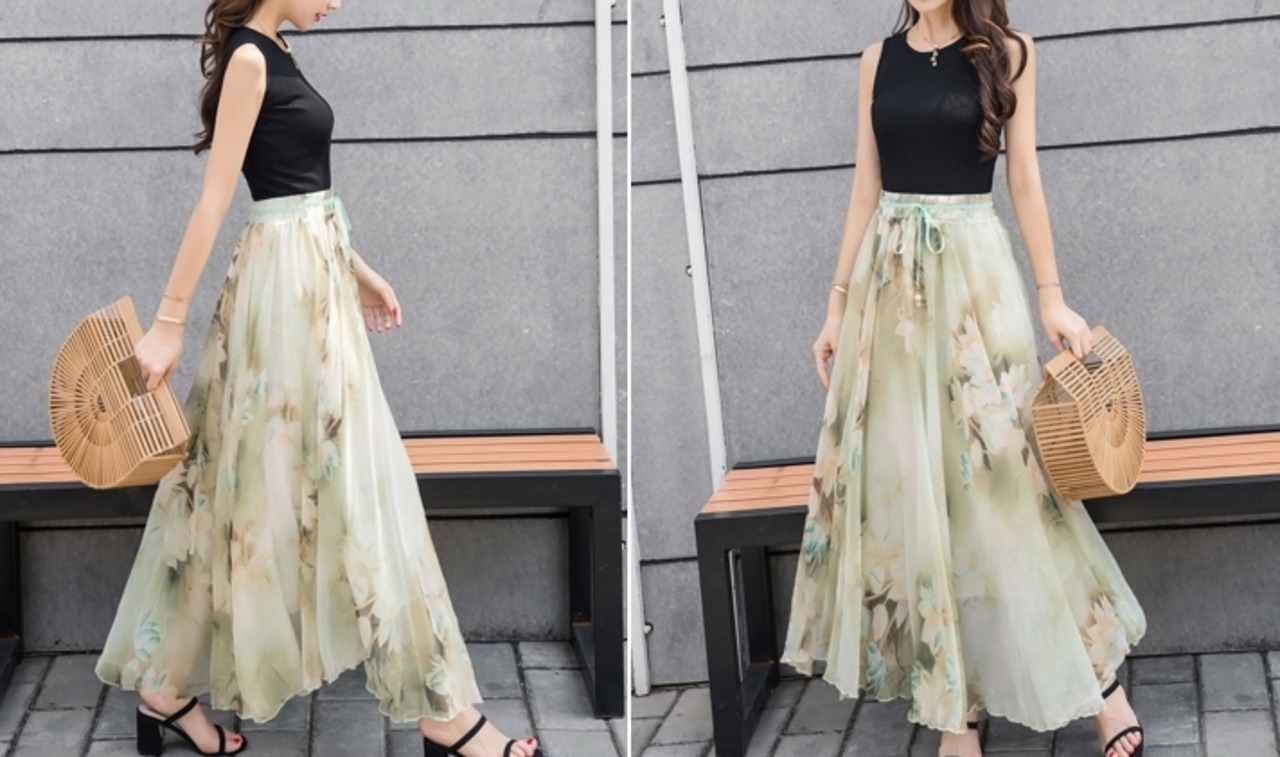 チュールシフォン スカート ワンピース アンクル丈 透け感 2WAY 大人可愛い かわいい カジュアル サイズ S M L XL ホワイトグレー グリーン ダークグレー ピンク ブラック 花柄 春 夏デートお出かけ 10代 20代 30代 レディース 送料無料