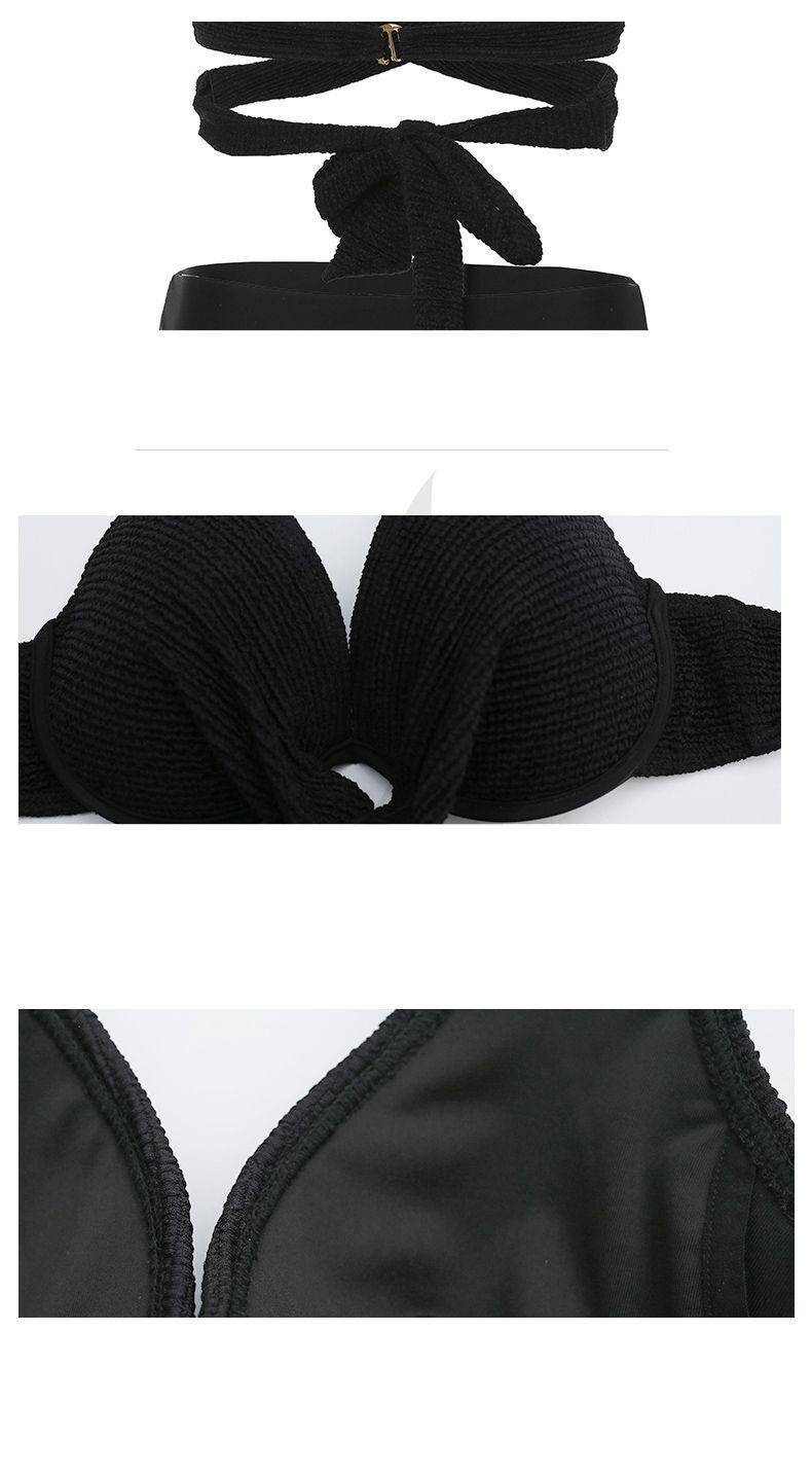 ホルターネックとクロスバンドが印象的なタンキニ水着。