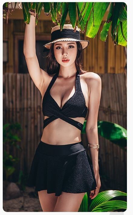 水着 スイムウェア タンキニ スカパン セパレート ホルターネック ワイヤー パッド付 クロスバンド ベルト バックリボン バックシャン 胸元 谷間 2点セット ツーピース 大人可愛い きれいめ セクシー sexy シンプル 大人 大人っぽい おしゃれ お洒落 女っぽ M L XL 白 ホワイト 黒 ブラック 無地 20代 30代 40代 レディース 夏 ビーチ プール リゾート 旅行 体型カバー 韓国 オルチャン 高見え 送料無料 モテ