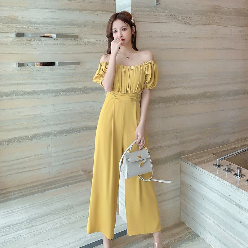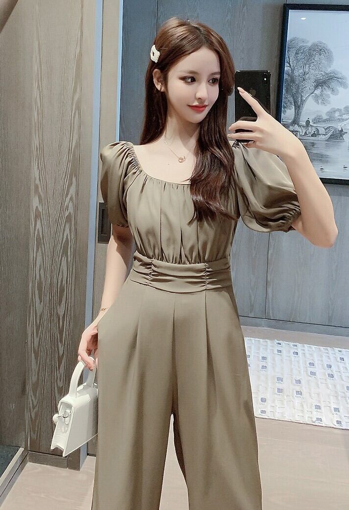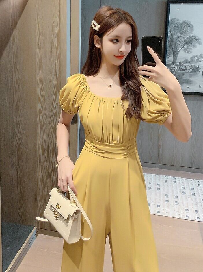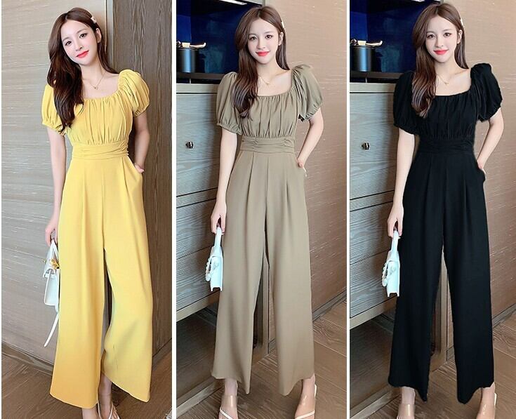 オールインワン レディース ジャンプスーツ サロペット パンツドレス パーティードレス ドレス パンツ S M L XL ブラック 黒 ブラウン 茶色 イエロー 黄色 無地 春 夏 半袖 パフスリーブ スクエアネック ワイドレッグ ワイド フレア ハイウエスト 脚長 体型カバー 着やせ 美ライン 美シルエット ママ 上品 エレガント エレガンス モード スタイリッシュ モノトーン 華やか きれいめ パーティー 1.5次会 2次会 ナチュラル 大人 大人可愛い 存在感 主役級 謝恩会 こなれ感 ぬけ感 韓国