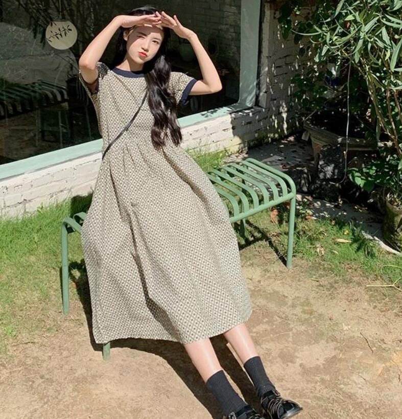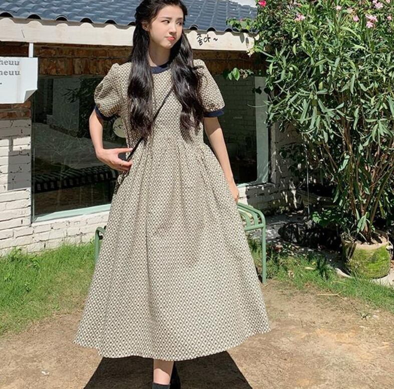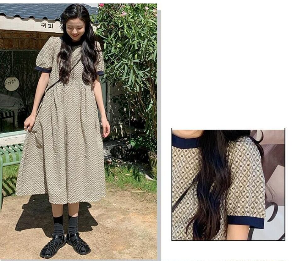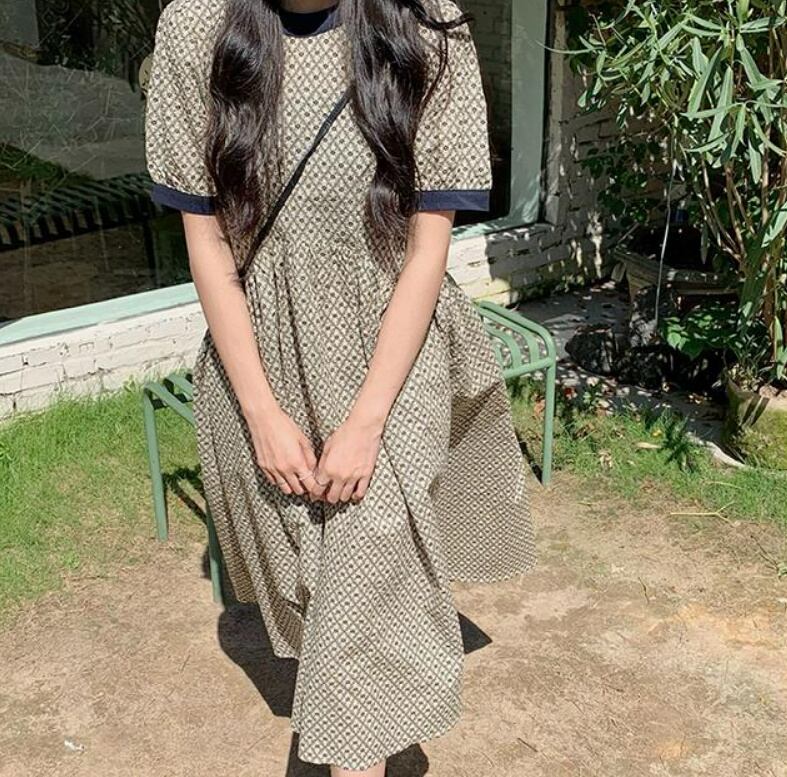 ワンピース レディース フレアワンピース M L XL 2XL ブラック 黒 大人カラー くすみカラー 春 夏 レトロ フラワー フローラル 花柄 花 半袖 パフスリーブ クルーネック パイピング ミドル丈 ミドル ミディ丈 ミディ ミディアム 膝丈 フレア Aライン ふんわり ゆったり ゆる リラックス 体型カバー 着やせ ママ マタニティ ハイウエスト 脚長 フェミニン ナチュラル きれいめ きれカジ カジュアル ガーリー キュート 大人 大人可愛い 存在感 主役級 デート お出かけ 休日 上品 韓国
