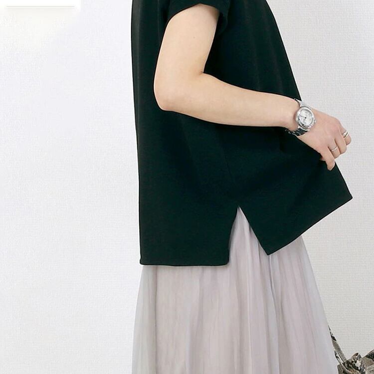 トップス レディース プルオーバー カットソー Tシャツ 白T 白トップス ミディアム丈 袖あり 半袖 フレンチスリーブ ラグランスリーブ モックネック サイドスリット 綿 コットン 白 ホワイト 黒 ブラック 茶 ブラウン 無地 夏 30代 40代 50代 ママ お出かけ 公園デビュー お泊り 休日 運動 アウトドア イベント 旅行 着回し 普段使い 重ね着 お揃い シミラールック コーデ 送料無料