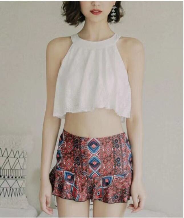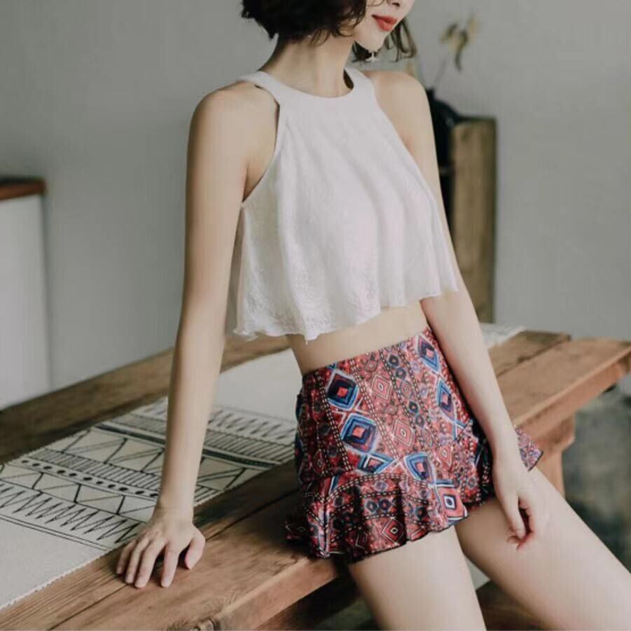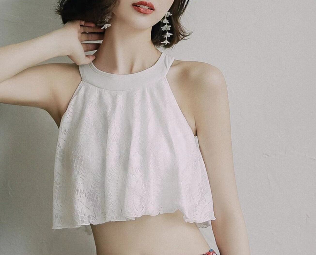 水着2点セット レディース 水着 スイムウェア ビーチウェア セット 2点セット ツーピース セットアップ M L XL ホワイト 白 ピンク エスニック エキゾチック アジアン 柄 大人カラー ノースリーブ クルーネック クロップド クロップド丈 ショート丈 ショート レース フレア ハイウエスト 脚長 美脚 体型カバー スタイルアップ 美ライン 美シルエット ママ ミニ丈 ミニ 膝上 フリル 海 プール バカンス ビーチ 旅行 フェミニン カジュアル きれいめ スタイリッシュ 着回し 大人 大人可愛い
