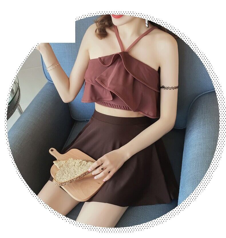 タンキニ水着3点セット レディース 水着 スイムウェア ビーチウェア 3点セット セット セットアップ スリーピース タンキニ 上下セット セパレート M L XL ブラウン ライトブラウン ダークブラウン 茶色 無地 ホルターネック フリル ティアード スカート フレア Aライン ミニ丈 ミニ ボトム パンツ 肌見せ ヘルシー セクシー 大人 大人可愛い キュート ガーリー 上品 きれいめ モテ バカンス 旅行 海 ビーチ プール デート 定番 着回し 万能 スタイルアップ 体型カバー 脚長 美脚 韓国