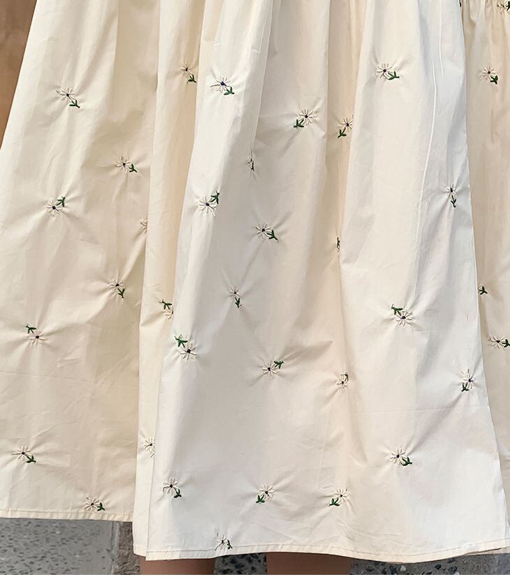 ホワイトカラーと同色の刺繍小花柄が清楚なお嬢様感も♪