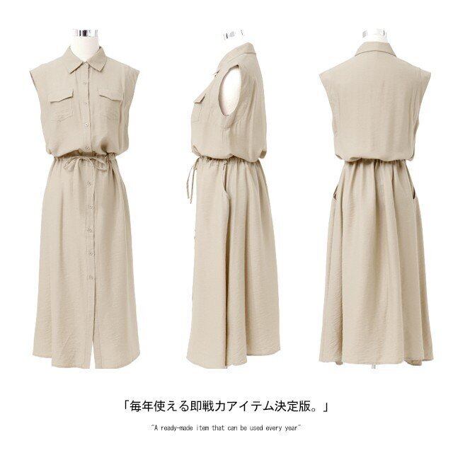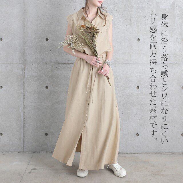 ワンピース レディース シャツワンピース ロング丈 マキシ丈 袖なし ノースリーブ 襟付き 胸ポケット ドロストデザイン Iライン リボン ウエストマーク ウエストリボン 大人可愛い きれいめ シンプル カジュアル 大人 上品 おしゃれ かっこいい 大人女子 こなれ感 抜け感 存在感 S M L XL 2XL 3XL 大きいサイズ ベージュ 黒 ブラック 灰色 グレー 無地 夏 20代 30代 40代 50代 お出かけ 女子会 休日 パーティー イベント リゾート 旅行 着回し 普段使い 重ね着