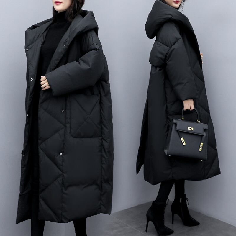 ロングコート レディース アウター コート S M L XL 2XL 3XL 大きいサイズ プラスサイズ ブラック 黒 無地 大人カラー モノトーン フード付き ポケット付き 厚手 防寒 防風 あったか 雪国 冬 長袖 ストレート ルーズ ゆったり ゆる オーバーサイズ ロング丈 ロング アンクル丈 定番 万能 着回し シンプル ベーシック 存在感 主役級 王道 こなれ感 カジュアル きれカジ フェミニン 大人 大人可愛い デート 休日 お出かけ 学生 通学 通勤 OL 韓国 オルチャン 20代 30代