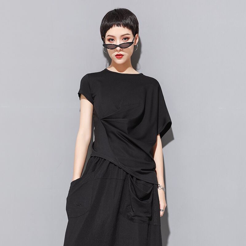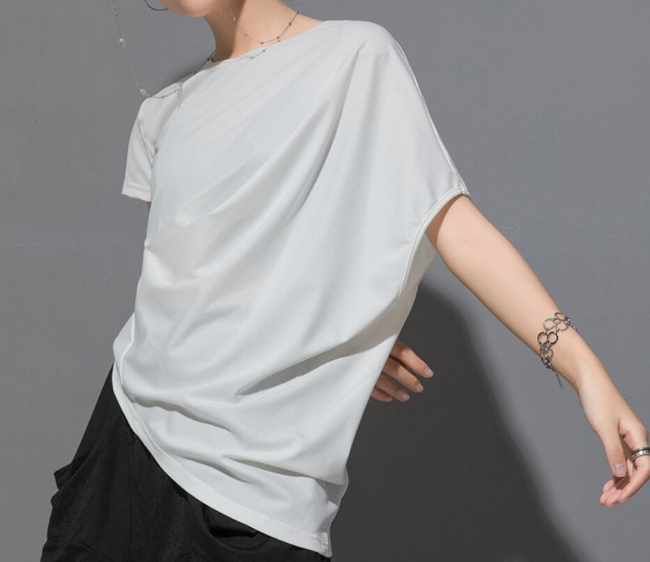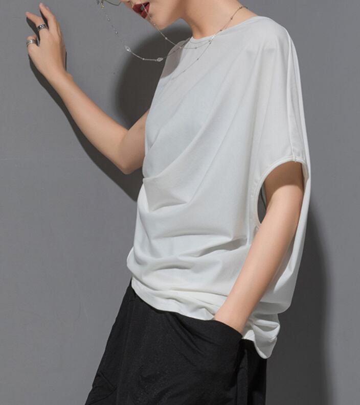 カットソー レディース トップス Tシャツ 半袖トップス M L XL ブラック 黒 ホワイト 白 大人カラー モノトーン 無地 タック 変形 アシンメトリー クルーネック ラウンドネック 春 夏 半袖 フレンチスリーブ ストレート ルーズ ゆったり ゆる 体型カバー ストリート ストカジ フェミニン ナチュラル カジュアル きれいめ きれカジ モード クール スタイリッシュ メンズライク マニッシュ 個性 ユニーク シンプル 大人 大人可愛い 存在感 主役級 休日 着回し 学生 通学 韓国 オルチャン