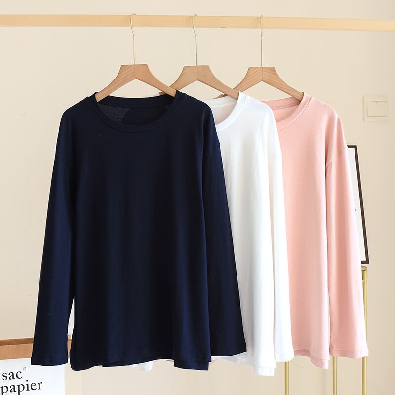 プルオーバー トップス カットソー 長袖 ラウンドネック 綿 きれいめ シンプル カジュアル こなれ感 ラフ 無地 オールシーズン お出かけ 休日 ヨガ 着回し 普段使い ゆる ホワイト ピンク ネイビー