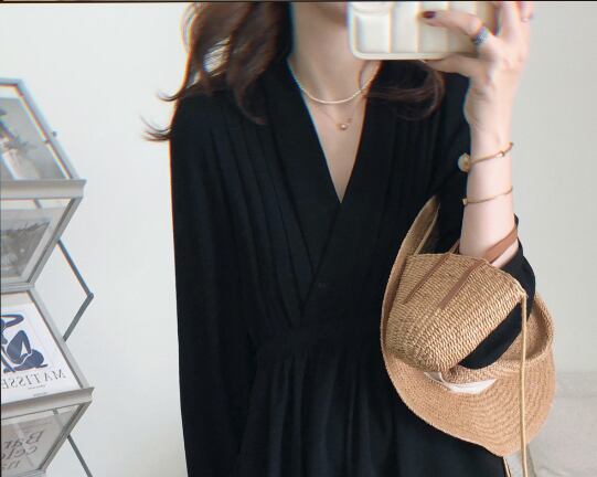 スカート ワンピース 膝下 ロング ロング丈 袖あり 長袖 Vネック 襟なし かわいい 大人可愛い きれいめ シンプル カジュアル 大人 上品 おしゃれ お洒落 かっこいい レトロ アジアン エスニック エキゾチック 大人可愛い 大人女子 こなれ感 ラフ キュート ガーリー ルーズ 個性的 クール モード系 セクシー エレガント モダン 存在感 とろみ感 抜け感 無地 春 秋 冬 10代 20代 30代 女性用 ママ 女の子 デート お出かけ 公園デビュー 女子会 お泊まり 休日 ファッション コーデ