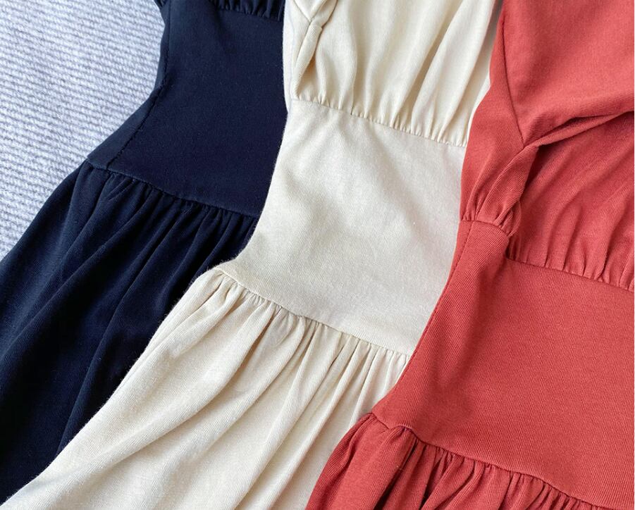 ワンピース ロングスカート 半袖 襟なし ニット 薄手 シンプル 大人 無地 ホワイト ブラック レッド