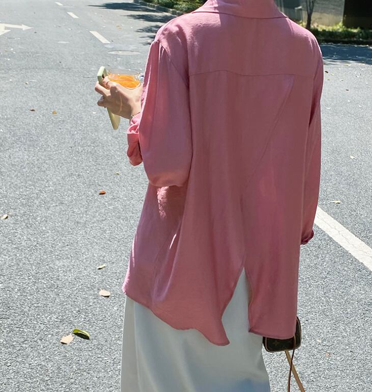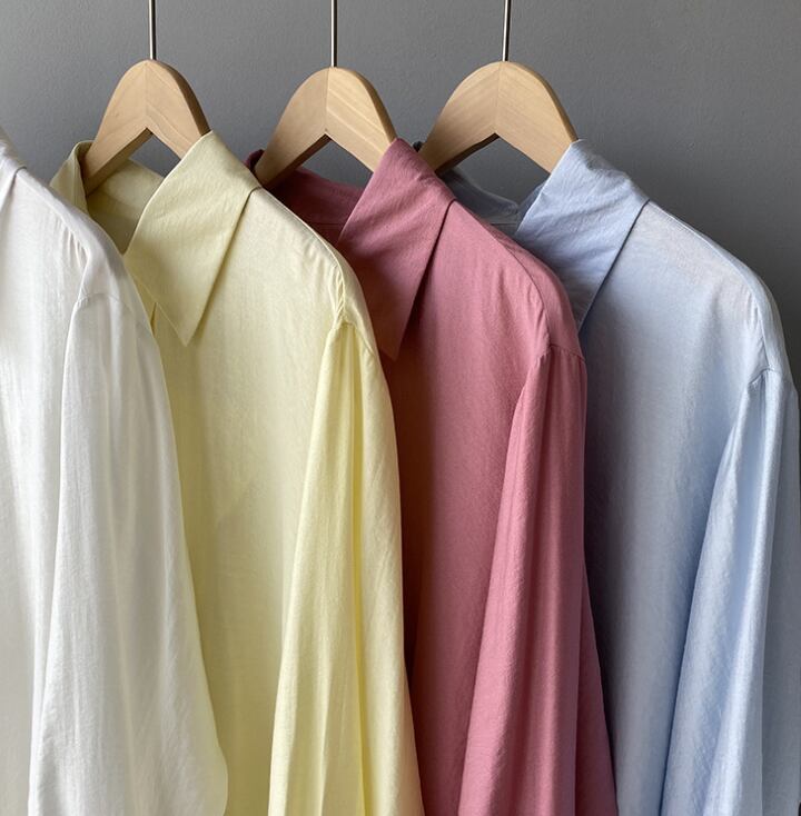 シャツ 白シャツ 長袖 透け感 薄手 きれいめ シンプル カジュアル 上品 こなれ感 ラフ メンズライク 無地 オールシーズン OL デート お出かけ リゾート 着回し 普段使い 重ね着 ホワイト ブルー イエロー ピンク