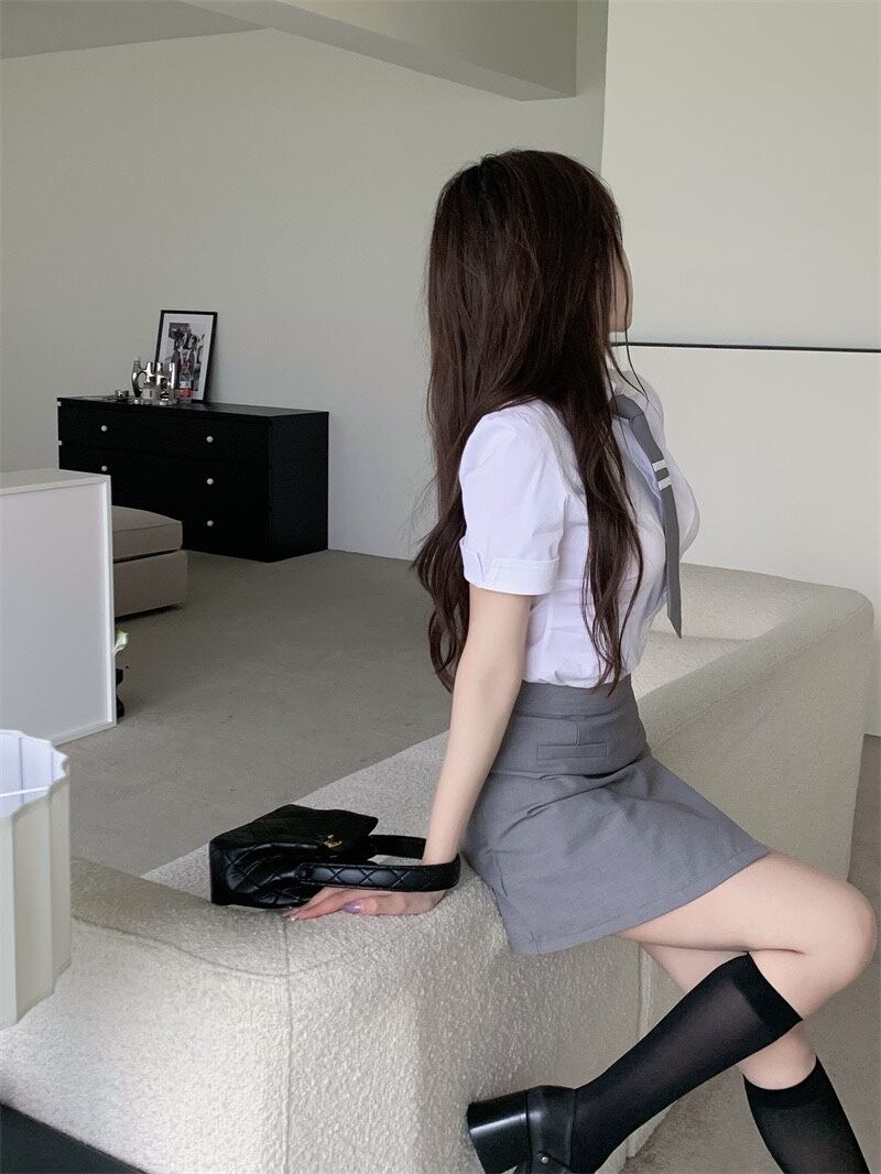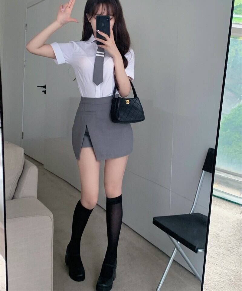 シンプルなシャツ&スカート&ネクタイの3点セット。