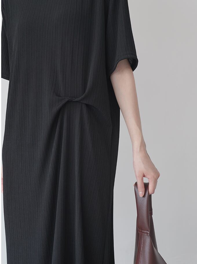 ワンピース シャツ ブラウス 白シャツ ロング丈 半袖 ラウンドネック ストレート シンプル カジュアル こなれ感 ラフ ルーズ 抜け感 無地 春 夏 秋 お出かけ お泊まり 休日 ヨガ 普段使い ブラック