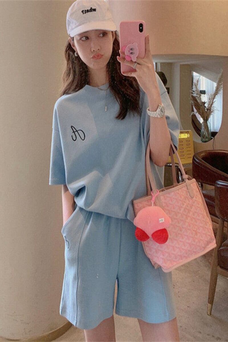 パジャマ 部屋着 寝巻き 半袖 上下セット シンプル 夏 女性用 ゆったり グレー 水色