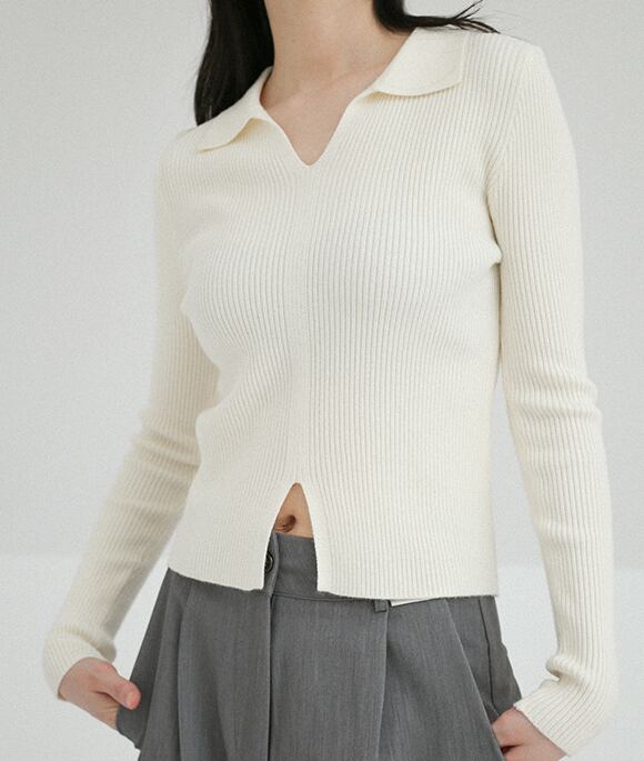 ニットソー 長袖 Vネック 襟付き リブ きれいめ シンプル おしゃれ こなれ感 ラフ 抜け感 無地 秋 冬 デート お出かけ 休日 リゾート 旅行 着回し 普段使い 暖かい 防寒 モテ ホワイト ブラック ブラウン