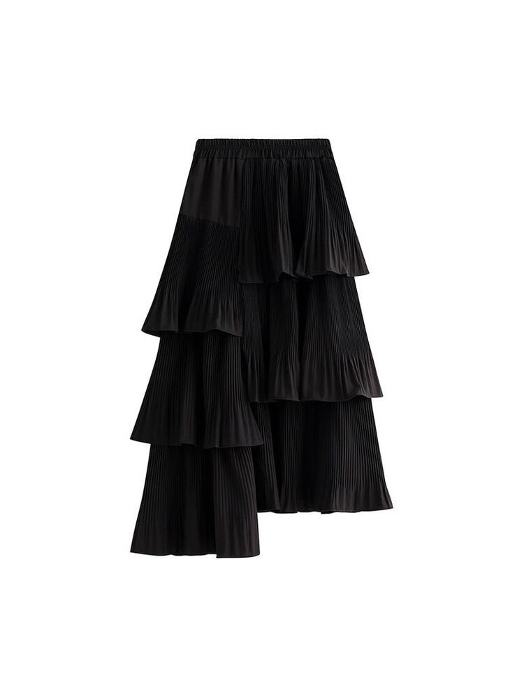 プリーツスカート ロング丈 アシンメトリー ウエストゴム 大人可愛い きれいめ シンプル おしゃれ ガーリー 無地 オールシーズン デート お出かけ 休日 パーティー 着回し ホワイト ブラック グレー ベージュ