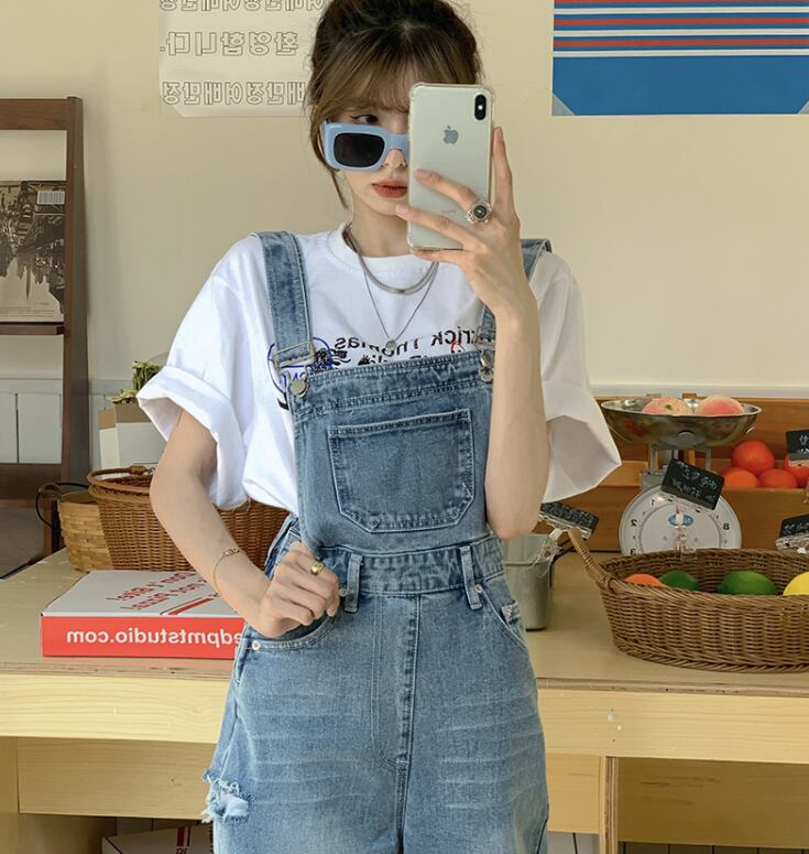 オールインワン サロペット Gパン デニムパンツ かわいい シンプル カジュアル ラフ メンズライク ボーイッシュ スポーティー 無地 オールシーズン 学生 お出かけ お泊まり 休日 リゾート 旅行 着回し 普段使い 重ね着 ブルー