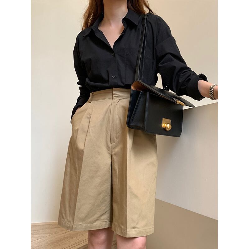 シャツ 長袖 襟付き 綿 シンプル カジュアル かっこいい こなれ感 ラフ メンズライク ボーイッシュ クール 無地 春 秋 冬 ビジネス OL お出かけ 休日 着回し 普段使い 重ね着 ブラック
