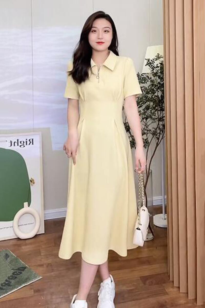 フレアワンピース ロング丈 袖あり 半袖 襟付き フレア Aライン ファスナー ハイウエスト かわいい シンプル カジュアル おしゃれ お洒落 こなれ感 ラフ キュート ガーリー 無地 春 夏 10代 20代 30代 レディース 女性用 女の子 学生 通学 デート お出かけ お泊まり 休日 イベント リゾート 旅行 海 プール レストラン 着回し 普段使い 重ね着 お揃い 双子 オルチャン コーデ トレンド インスタ映え M L XL 2XL 3XL 大きいサイズ ブラック イエロー ブルー