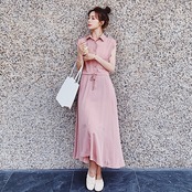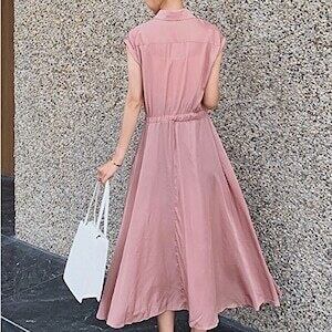 ワンピース レディース シャツワンピース ロング丈 袖あり フレンチスリーブ 襟付き フレア Aライン ウエストマーク ウエストリボン 大人可愛い きれいめ シンプル 上品 おしゃれ こなれ感 とろみ感 抜け感 S M L ブルーグリーン 青緑 ピンク 無地 夏 10代 20代 30代 40代 50代 60代 ママ 通学 学生 デート お出かけ 女子会 休日 イベント リゾート 旅行 モテ 着回し 普段使い 重ね着 お揃い 双子 韓国 オルチャン