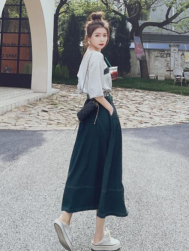 ワンピース レディース フレアワンピース ロングたけ 袖あり 5分袖 五分袖 襟なし オフショルダー オフショル フレア Aライン 切り替えデザイン ドッキング ポケット ウエストマーク ベルト ツーピース風 かわいい 大人可愛い きれいめ カジュアル おしゃれ こなれ感 個性的 存在感 抜け感 S M L XL 白 濃緑 深緑 グリーン ホワイト 無地 春 夏 秋 10代 20代 30代 40代 50代 ママ 学生 通学 デート お出かけ 女子会 休日 イベント リゾート 旅行 体型カバー