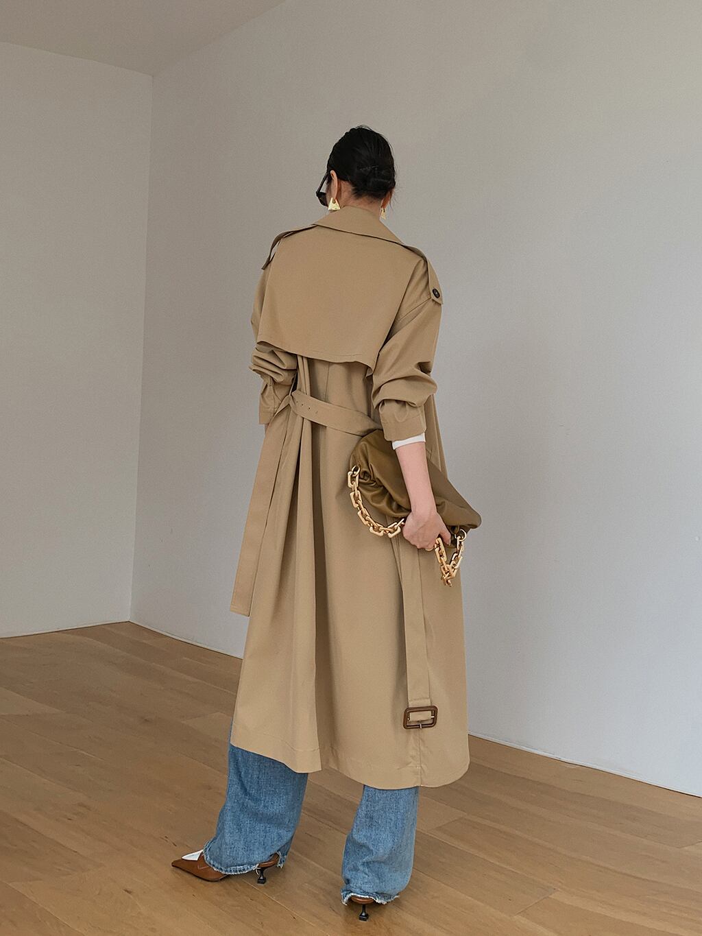 アウター レディース トレンチコート ミモレ丈 長袖 袖あり 襟つき ドッキング 切り替えデザイン ウエストベルト きれいめ シンプル カジュアル 大人 上品 おしゃれ かっこいい 大人女子 こなれ感 抜け感 S M L ベージュ 無地 春 秋 20代 30代 40代 50代 60代 ママ オフィス ビジネス OL 通勤 学生 通学 デート お出かけ 女子会 休日 イベント 旅行 普段使い 韓国 オルチャン