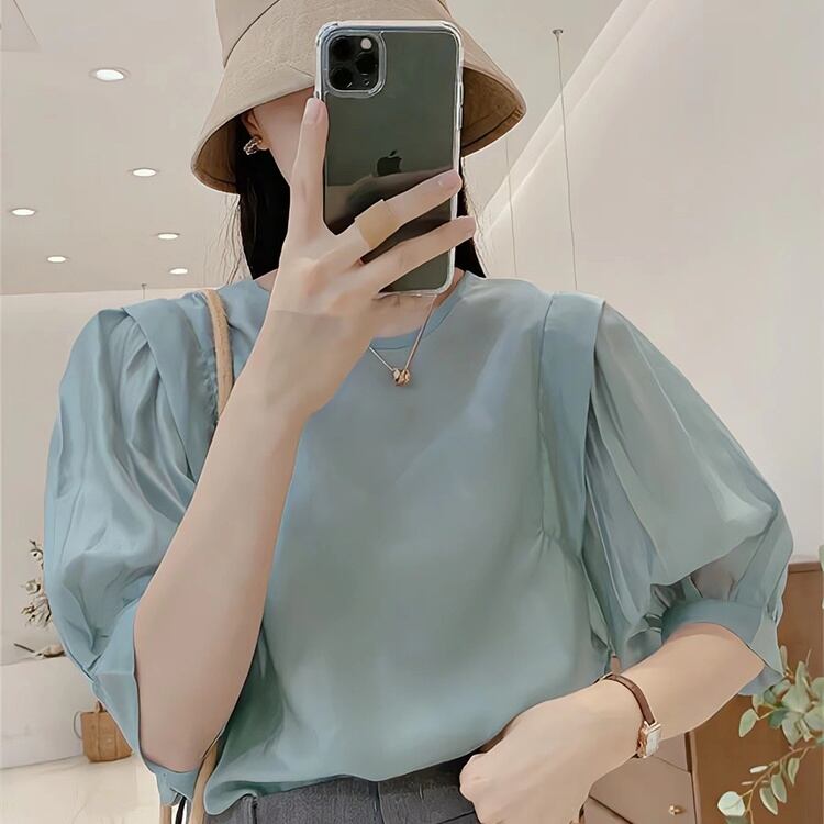 トップス シャツ シフォンシャツ フレンチ ブルー イェロー 袖付き 5分袖 シック S M L XL かわいい 大人可愛い きれいめ シンプル カジュアル 大人 上品 おしゃれ お洒落 かっこいい レトロ アジアン エスニック エキゾチック 大人可愛い 大人女子 こなれ感 ラフ キュート ガーリー ルーズ 個性的 クール モード系 セクシー エレガント モダン 主役級 存在感 とろみ感 抜け感 春 秋 10代 20代 30代 女性用 ママ デート お出かけ 公園デビュー 女子会 休日 アウトドア