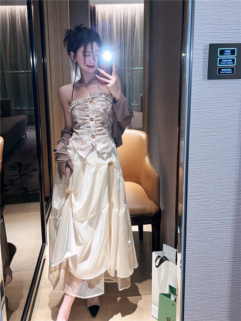 チューブトップワンピース ロング丈 ひざ下丈 膝下 袖なし ふわふわ フレア Aライン 大人可愛い きれいめ 上品 おしゃれ お洒落 大人女子 キュート ガーリー フォーマル ワンピース 春 夏 秋 10代 20代 30代 40代 レディース 用 オフィス OL デート お出かけ 休日 パーティー おめかし イベント 旅行 海 プール ホテル ガーデン レストラン パーティー着回し ファッション コーデ スタイル 美脚 トレンド インスタ映え コーデ カジュアル モカローズ S M L