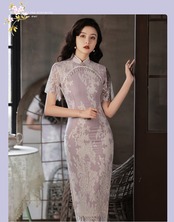チャイナドレス レディース ドレス ワンピース ブルー 青 ピンクパープル パステルカラー くすみカラー 大人カラー 花柄 フラワー フローラル レース 透け感 透明感 S M L XL 2XL スタンドカラー パール 半袖 レース袖 フレアスリーブ サイドスリット スリット タイト 細身 フィット くびれ 美ライン 美シルエット ミドル丈 ミドル ミディ丈 ミディ 膝丈 上品 エレガント エレガンス シック 大人 大人可愛い フェミニン 華やか モテ きれいめ 存在感 主役級 パーティー イベント
