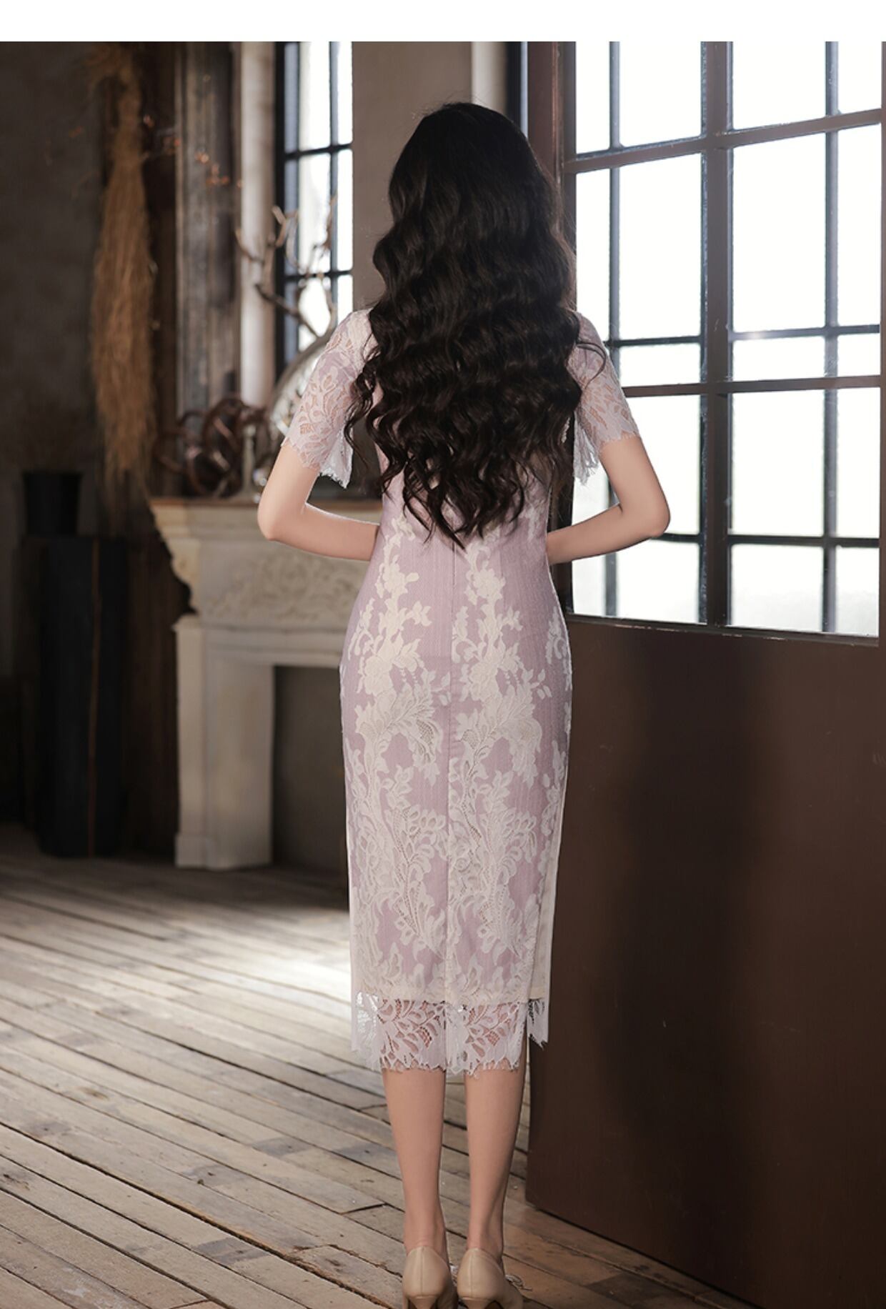 レースの袖や裾&美シルエットが魅力的◎