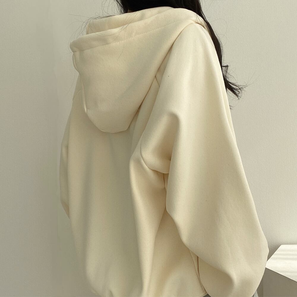 トップス レディース パーカー フーディ ジップアップ スウェット ロング丈 長袖 フード付き ファスナー 前開き シンプル カジュアル メンズライク こなれ感 ボーイッシュ 抜け感 ワンサイズ フリーサイズ ライトベージュ グレー 灰色 黒 ブラック 無地 春 秋 冬 10代 20代 30代 40代 50代 ママ 学生 通学 休日 お泊り アウトドア イベント 旅行 あったか 暖かい リラックス 楽ちん 体型カバー 着回し 普段使い 重ね着 お揃い 双子 韓国 オルチャン