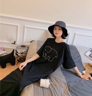 ワンピース レディース Tシャツワンピース マキシワンピ L XL 2XL 3XL 大きいサイズ プラスサイズ ブラック 黒 クルーネック ロング丈 ロング マキシ丈 マキシ 膝下 スリット 半袖 五分袖 5分袖 プリント ぞう ゾウ 象 ゆったり ゆる ルーズ 体型カバー ママ マタニティ シンプル ベーシック カジュアル きれカジ ナチュラル リラックス 大人 大人可愛い 存在感 主役級 こなれ感 ぬけ感 定番 王道 着回し 万能 学生 通学 お出かけ 休日 ルームウェア 部屋着 韓国 オルチャン
