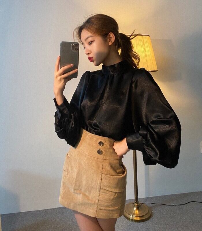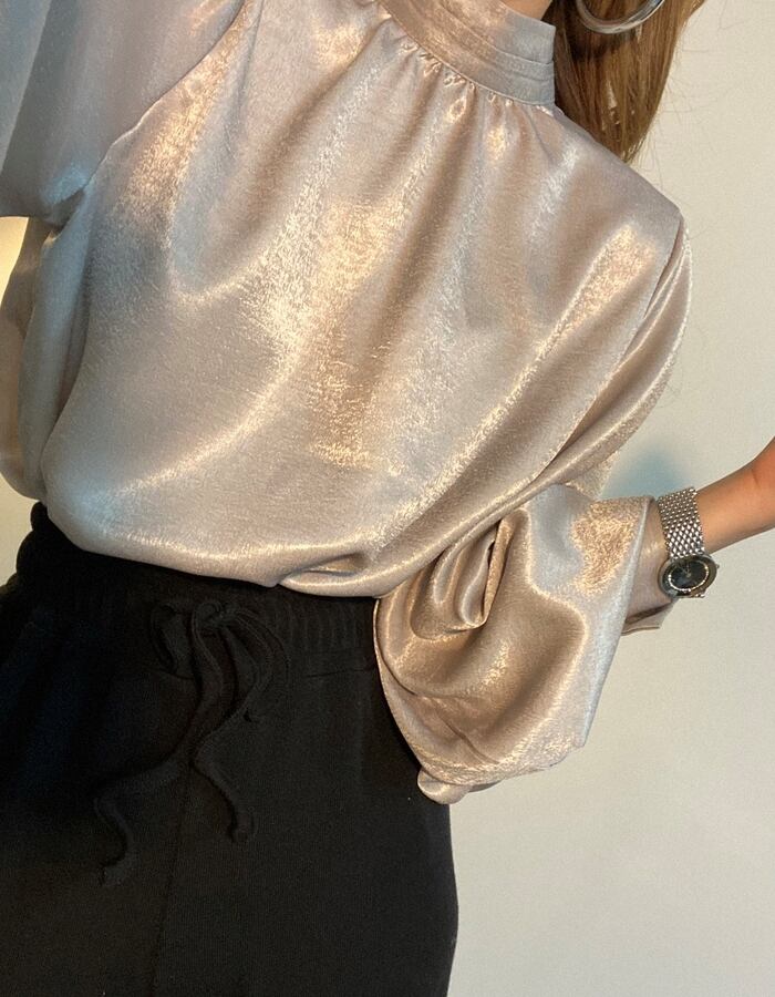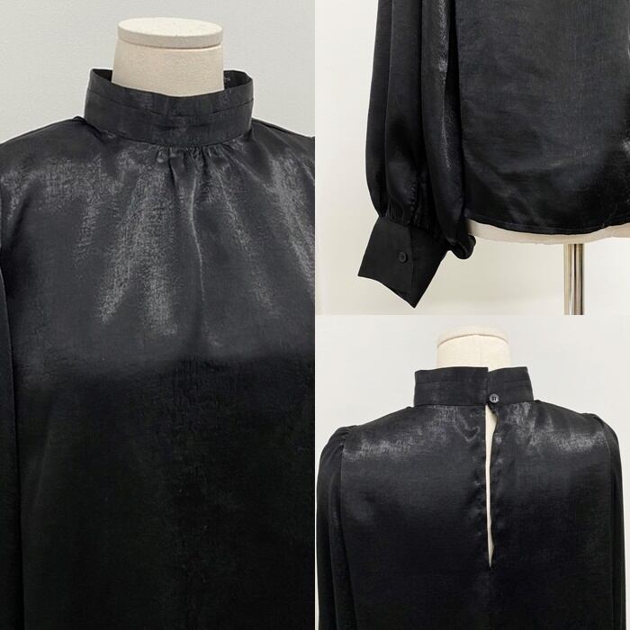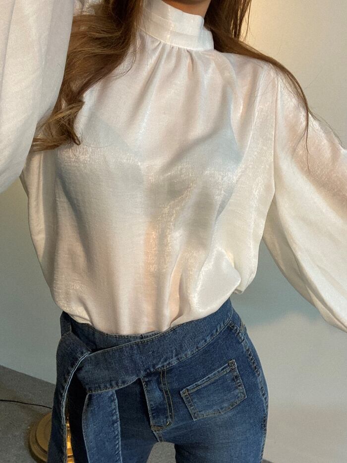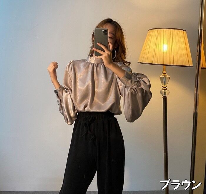 ブラウス レディース トップス シャツ カットソー ワンサイズ フリーサイズ ブラック 黒 ブラウン 茶色 ホワイト 白 光沢感 春 秋 長袖 ランタンスリーブ ボリューム袖 スタンドカラー ハイネック フェミニン ナチュラル カジュアル きれいめ きれカジ 大人 大人可愛い こなれ感 ぬけ感 存在感 主役級 休日 お出かけ デート お呼ばれ ストレート ショート丈 ショート 華やか きちんと感 清潔感 ガーリー モテ キュート クール スタイリッシュ 定番 万能 着回し 通学 学生 韓国 オルチャン