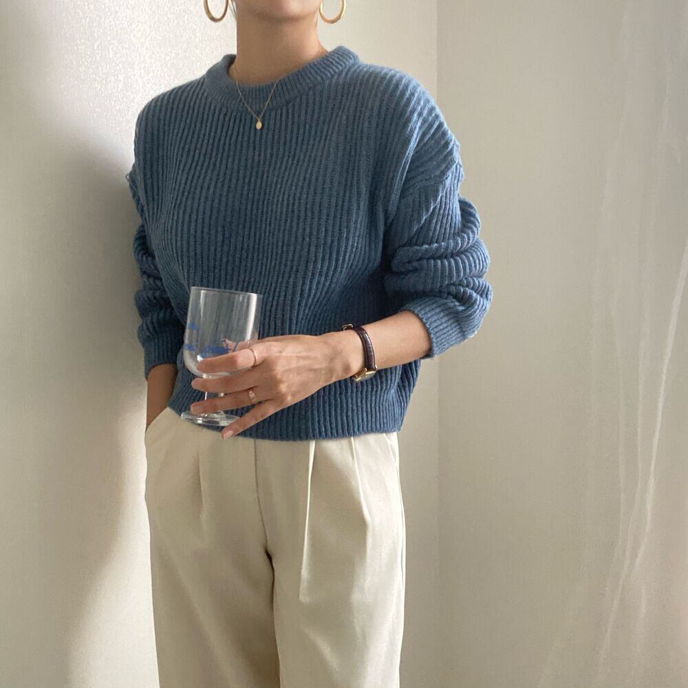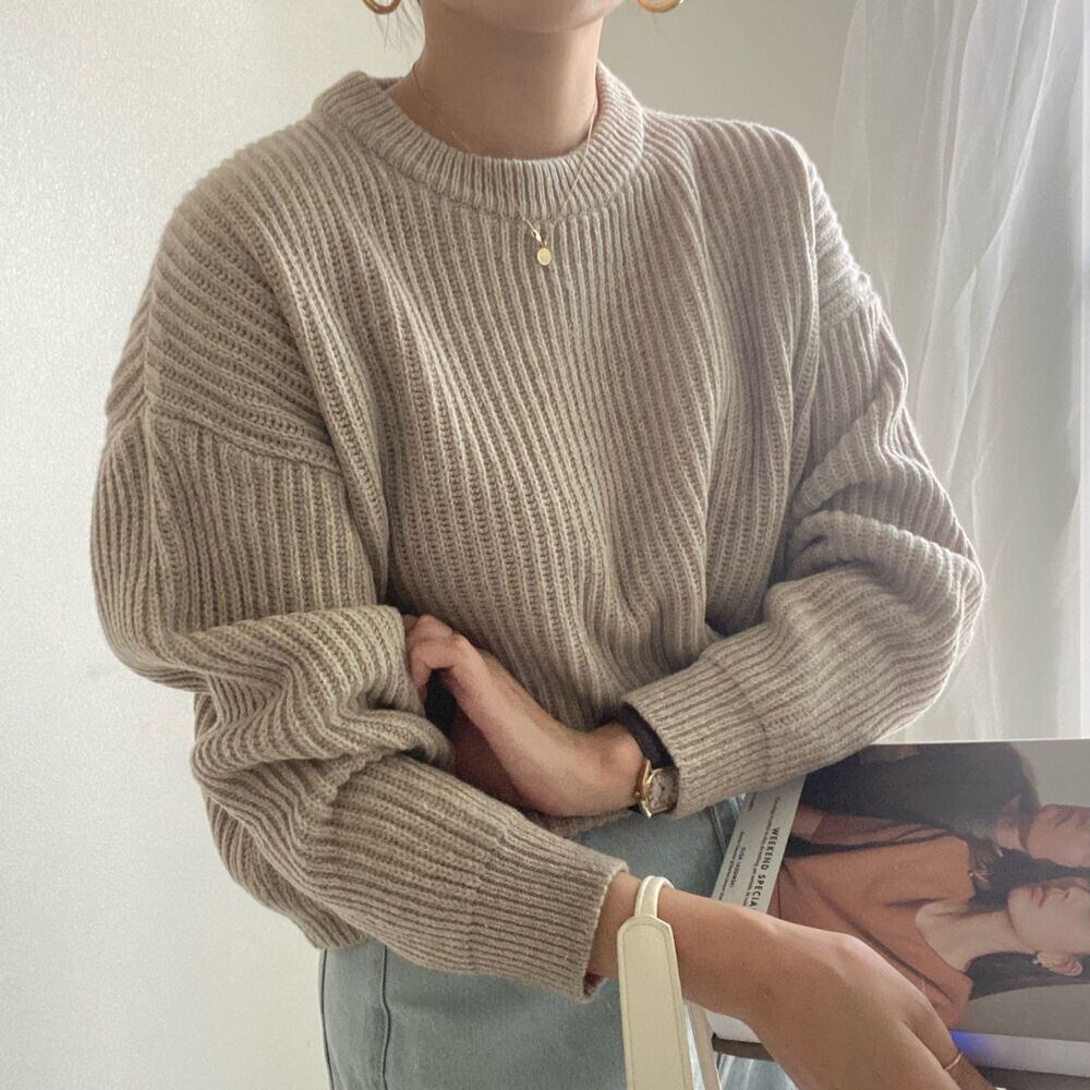 ニット レディース トップス セーター ワンサイズ フリーサイズ ベージュ ブルー 青 大人カラー くすみカラー 秋カラー 秋 冬 ラウンドネック クルーネック リブ ストレート ゆったり ゆる ルーズ ドロップショルダー 長袖 ショート丈 ショート ママ フェミニン ナチュラル カジュアル きれいめ きれカジ 大人 大人可愛い こなれ感 ぬけ感 デート 休日 お出かけ 定番 万能 着回し 王道 上品 シンプル ベーシック ガーリー モテ キュート クール 存在感 主役級 学生 通学 韓国 オルチャン