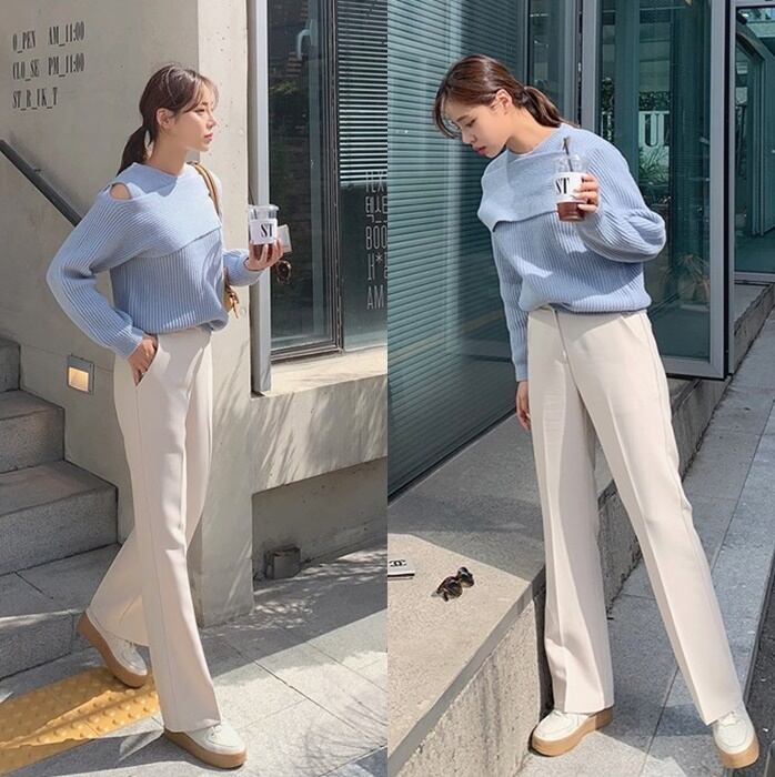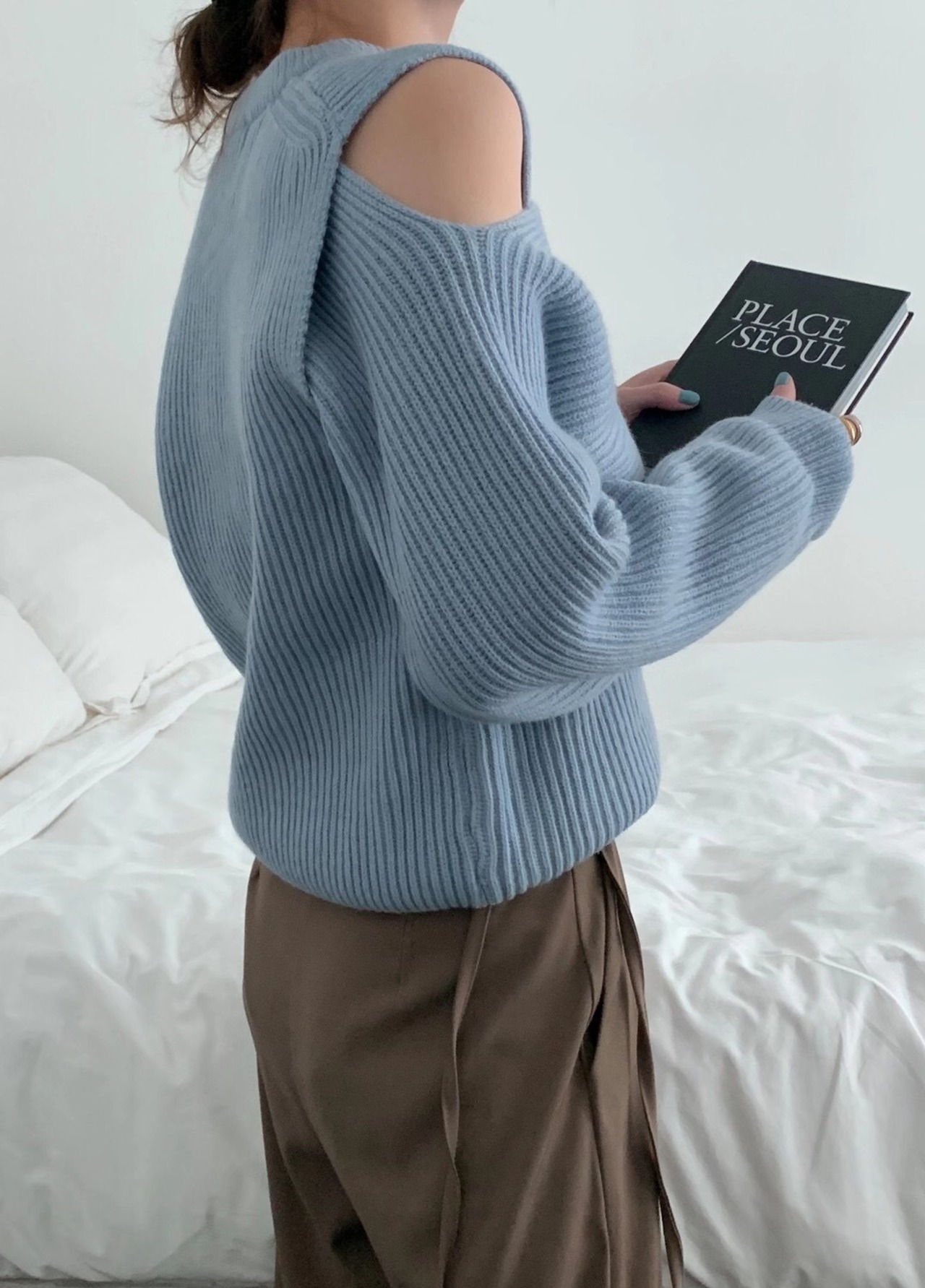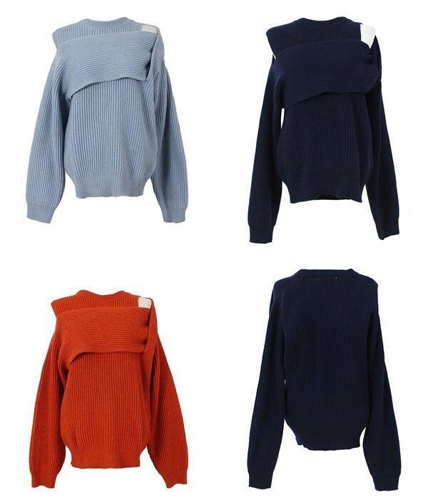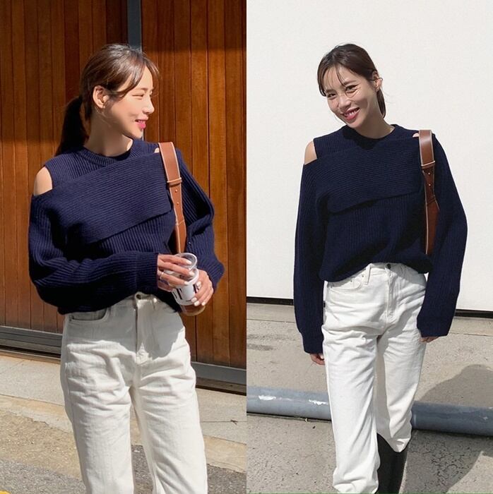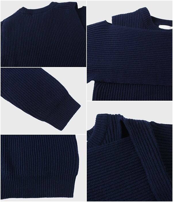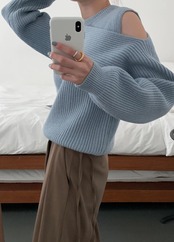 オープンショルダーデザインが素敵なニット。