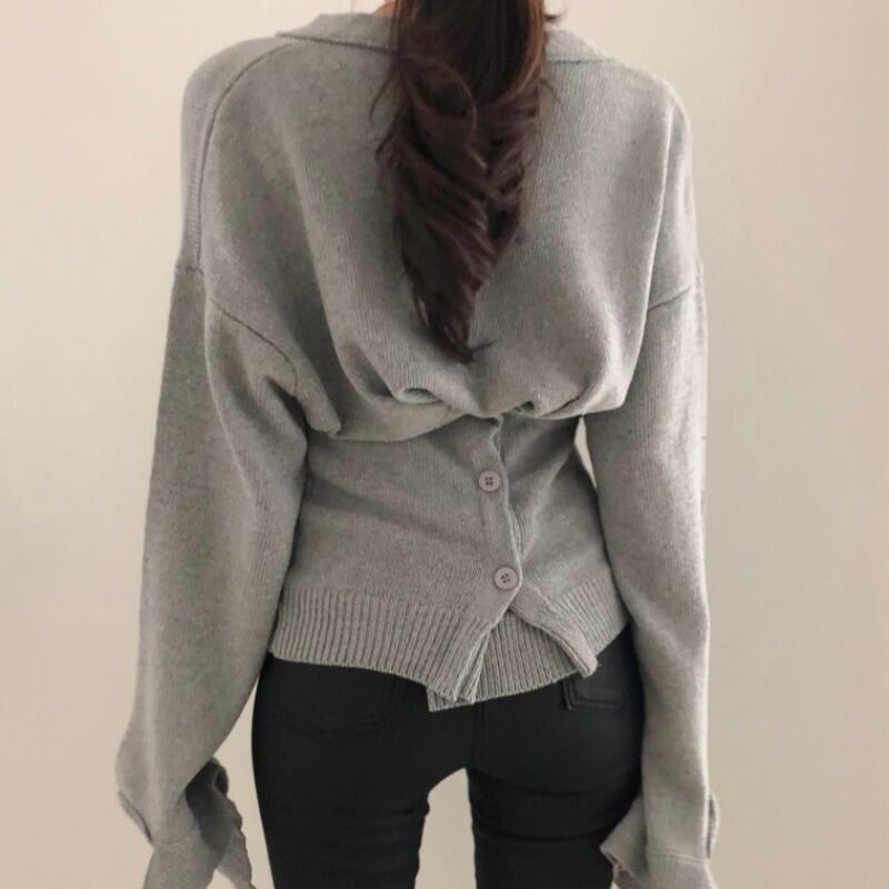 トップス レディース カーディガン ミディアム丈 袖あり 長袖 ドロップショルダー ラウンドネック 襟なし バックシャン ボタン ドッキング 重ね着風 レイヤード風 おしゃれ お洒落 かっこいい こなれ感 個性的 主役級 存在感 抜け感 ダメージ風 穴あき ワンサイズ フリーサイズ 赤 レッド グレー 灰色 ベージュ 無地 春 秋 冬 クリスマス バレンタイン 10代 20代 30代 40代 50代 ママ 学生 通学 お出かけ 女子会 休日 アウトドア イベント 旅行 着回し 普段使い お揃い 双子 韓国