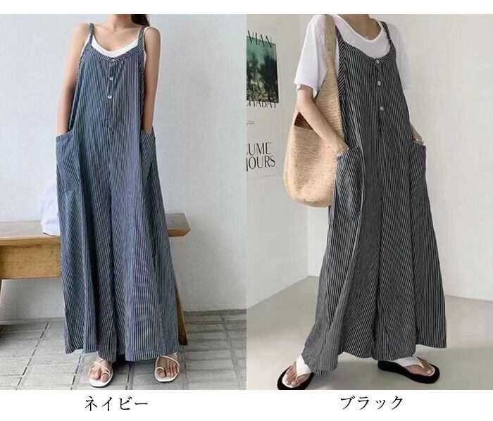 ワンピース オールインワン サロペット ロング丈 ワイド 透け感 シースルー ポリエステル かわいい 大人可愛い きれいめ カジュアル 大人 お洒落 かっこいい 大人女子 こなれ感 ボーイッシュ ルーズ エレガント 主役級 存在感 ストライプ 10代 20代 30代 40代 レディース 女性用 ママ 通学 デート お出かけ 公園デビュー 女子会 休日 リゾート アウトドア 旅行 海 プール 重ね着 楽ちん サイズ M L XL ブラック ネイビー
