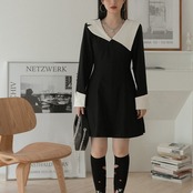 ワンピース 襟デザイン 膝上 ミニ丈 袖あり 長袖 薄手 かわいい 大人可愛い きれいめ 上品 おしゃれ 大人可愛い 個性的 モダン 主役級 二次会 披露宴 10代 20代 30代 レディース 女性用 デート お出かけ 女子会 パーティー イベント ホテル ファッション コーデ スタイル モテ サイズ S M ブラック
