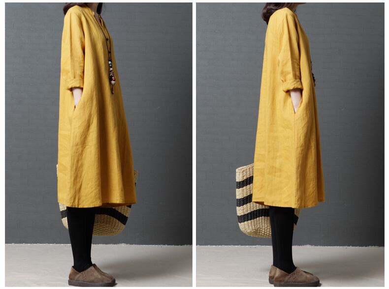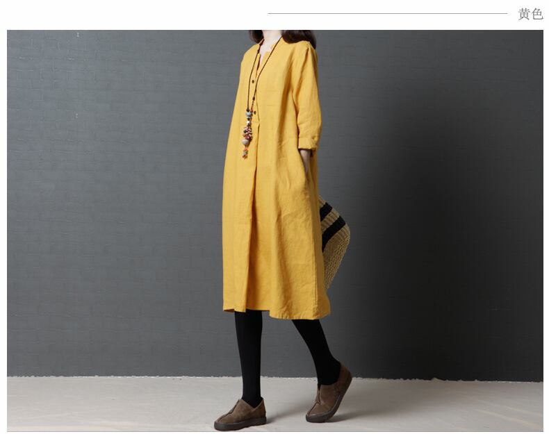 ワンピース レディース チュニックワンピース シャツワンピース 七分袖 Ⅴネック 膝丈 膝下 Aライン とろみ おしゃれ お洒落 大人女子 綿 麻 カジュアル 体型カバー 20代 30代 40代 50代 60代 緑 春 秋 ゆったり