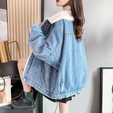 デニムジャケット アウター ジャケット 長袖 襟付き もこもこ モコモコ ポケット 綿 デニム 厚手 コットン かわいい 大人可愛い シンプル カジュアル おしゃれ お洒落 ボーイッシュ 無地 秋 冬 10代 20代 30代 レディース 通勤 学生 デート お出かけ 女子会 休日 普段使い ファッション コーデ スタイル 楽ちん 暖かい S M L XL 黒 ブラック 青 ブルー