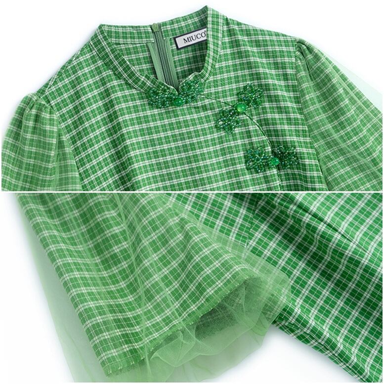 チェック柄ワンピース ワンピース レディース チャイナ風ドレス ミニワンピース バンドカラー スタンドカラー チュール袖 ショート丈 半袖 スリット入り チャイナボタン 半袖ワンピース チェック 緑 グリーン ワンピドレス 大人可愛い きれいめ 上品 キュート ガーリー エレガント フォーマル 春 夏 秋 冬 二次会 お呼ばれ オフィス ビジネス OL 通勤 学生 通学 デート お出かけ パーティー イベント 女子会 旅行 リゾート アウトドア 体型カバー 美脚 脚長 普段使い トレンド インスタ映え