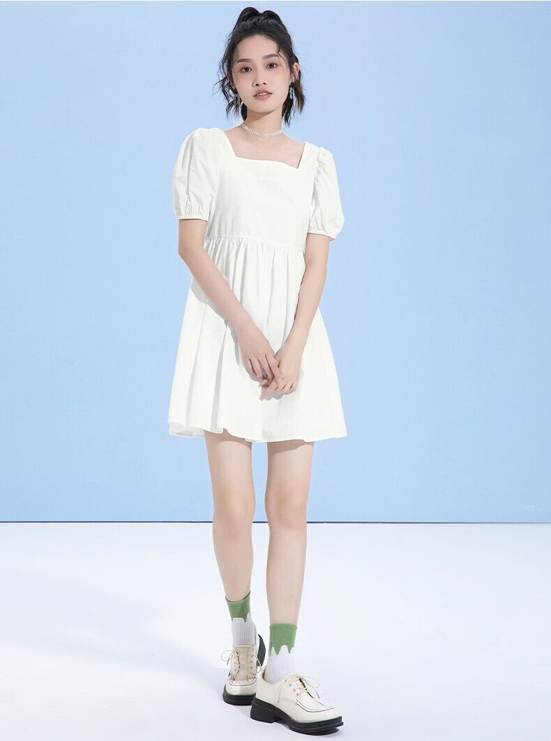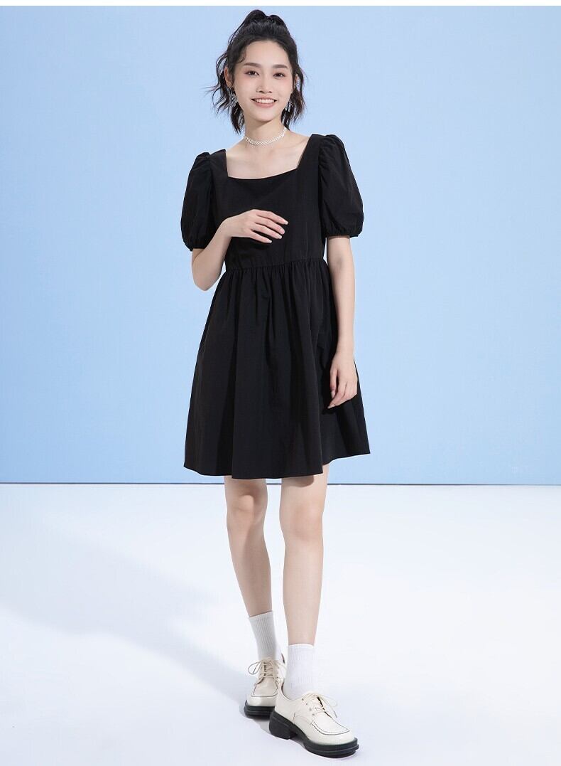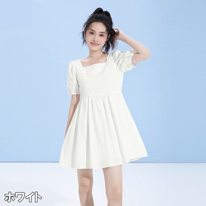 ワンピース レディース ミニワンピース S M L ブラック 黒 ホワイト 白 無地 春 夏 半袖 パフスリーブ スクエアネック ミニ丈 ミニ ショート丈 ショート 膝上 フレア Aライン ハイウエスト 脚長 美脚 体型カバー 着やせ スタイルアップ フェミニン きれいめ きれカジ カジュアル ナチュラル 上品 エレガント さわやか 華やか 清潔感 清楚 大人 大人可愛い 存在感 主役級 こなれ感 ぬけ感 デート お出かけ 休日 お呼ばれ シンプル 定番 万能 王道 ガーリー モテ 韓国 オルチャン
