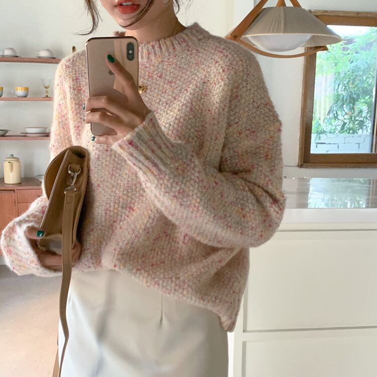 トップス ミックスニット セーター 長袖 ワイド 厚手 かわいい 大人可愛い シンプル カジュアル お洒落 大人女子 こなれ感 ラフ キュート ルーズ 秋 冬 10代 20代 30代 40代 女性用 学生 通学 デート お出かけ 公園デビュー 女子会 お泊まり 休日 アウトドア リゾート 旅行 プール 高原 ホテル ガーデン 着回し 普段使い ファッション コーデ スタイル 暖かい モテ フリーサイズ オフホワイト ピンク