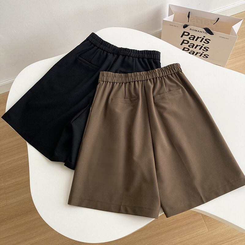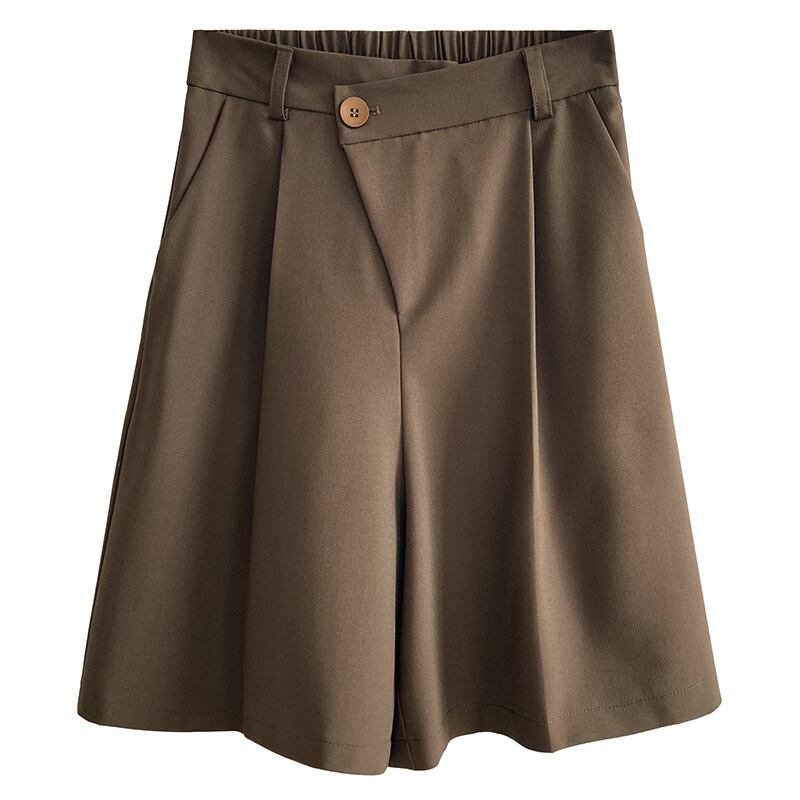 キュロット ハーフパンツ 斜めボタン レディース 無地 シンプル 着回し フォーマル ワイドパンツ カジュアル きれいめ ゴム カジュアル オフィス 裾広がり ハイウエスト 細見え すっきり Aライン 通勤 ОL 20代 30代 秋 冬 春 タック 膝上
