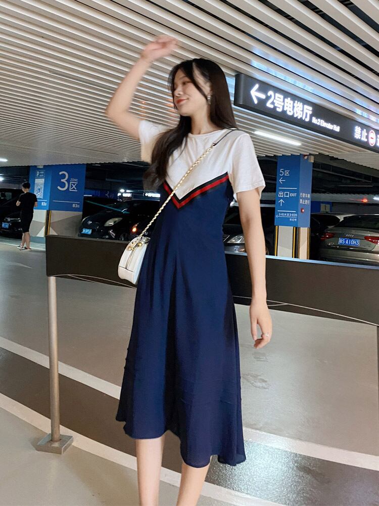 ワンピース レディース ミディワンピース S M L XL ネイビー ホワイト 紺 白 バイカラー 切り替え 春 夏 半袖 クルーネック ラウンドネック ライン ミドル丈 ミドル ミディ丈 ミディ 膝丈 フレア Aライン ハイウエスト 脚長 美脚 体型カバー 着やせ スタイルアップ フェミニン きれいめ きれカジ カジュアル ナチュラル マリン スポーティー さわやか 大人 大人可愛い 存在感 主役級 こなれ感 ぬけ感 デート お出かけ 休日 シンプル 定番 万能 王道 韓国 オルチャン 学生 通学