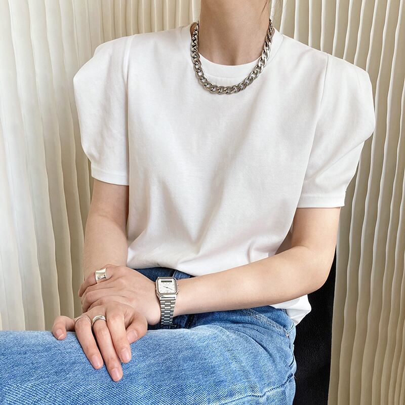 トップス Tシャツ パフスリーブ カットソー レディース 華奢 二の腕カバー 細見え トレンド 韓国 今っぽ 半袖 タック ギャザー 春 夏 秋 着回し キュート フォーマル 上品 大人女子 大人可愛い カジュアル 無地 ふんわり かわいい 可愛い エレガント