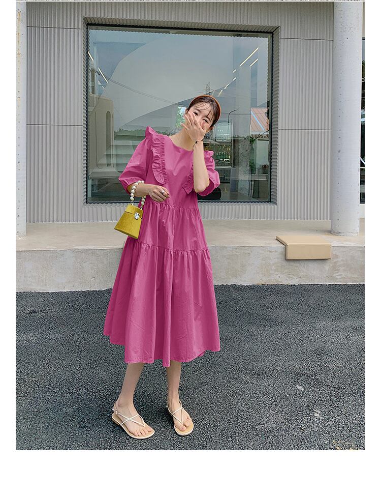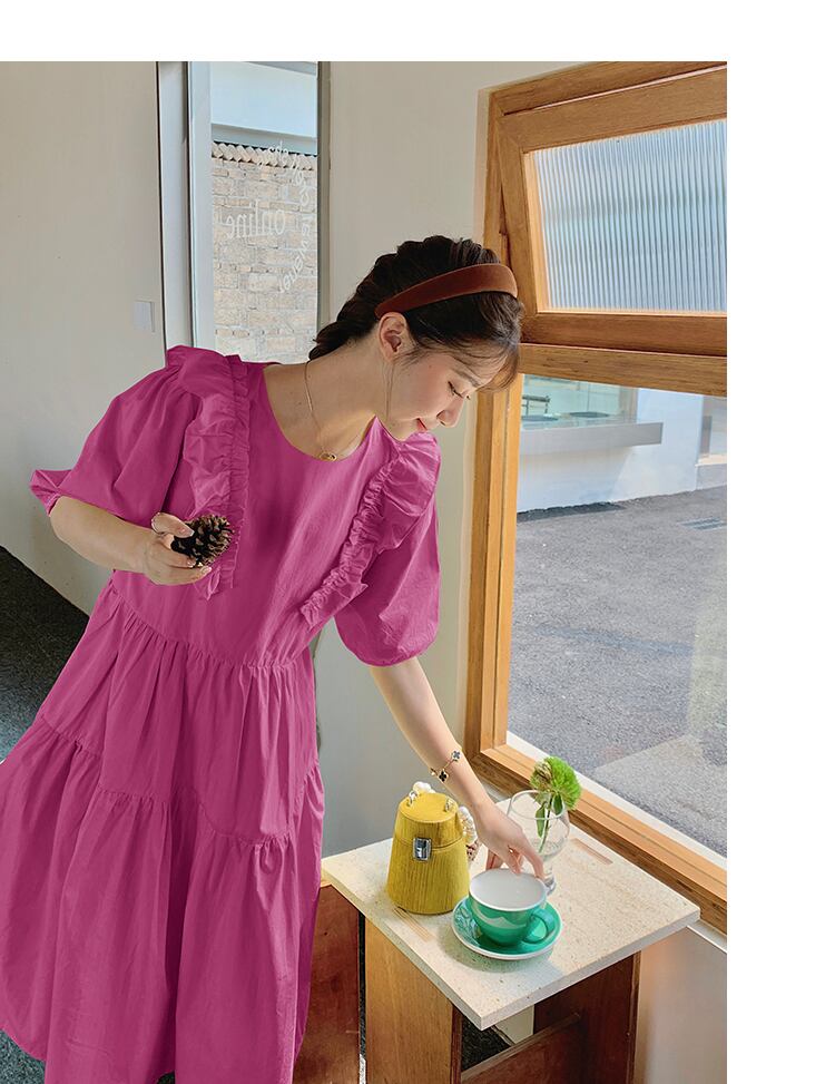 ワンピース レディース 春 夏 五分袖 パフスリーブ ラウンドネック ウエストシェイプ ミモレ丈 ひざ下 Aライン フレア フリル ハイウエスト 脚長 美脚 二の腕カバー 着やせ スタイルアップ フェミニン かわいい レディライク カジュアル ナチュラル 上品 エレガント さわやか きちんと感 清潔感 清楚 大人 大人可愛い 存在感 主役級 こなれ感 ぬけ感 デート お出かけ 休日 お呼ばれ 無地 主役級 定番 万能 王道 韓国 オルチャン S M L XL 2XL 3XL イエロー ピンク