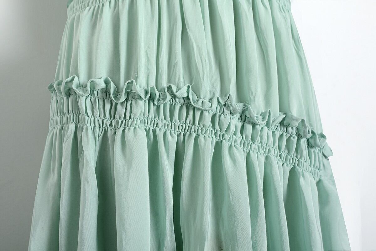 フリル ワンピース レディース 春 夏 袖なし ラウンドネック クルーネック ウエストシェイプ ロング丈 ロング Aライン フレア フリル ハイウエスト 脚長 美脚 ノースリーブ 着やせ スタイルアップ フェミニン かわいい レディライク カジュアル ナチュラル 上品 エレガント さわやか きちんと感 清潔感 清楚 大人 大人可愛い 存在感 主役級 こなれ感 ぬけ感 かわいい デート お出かけ 休日 お呼ばれ 無地 主役級 定番 万能 王道 韓国 オルチャン S M L ミントグリーン