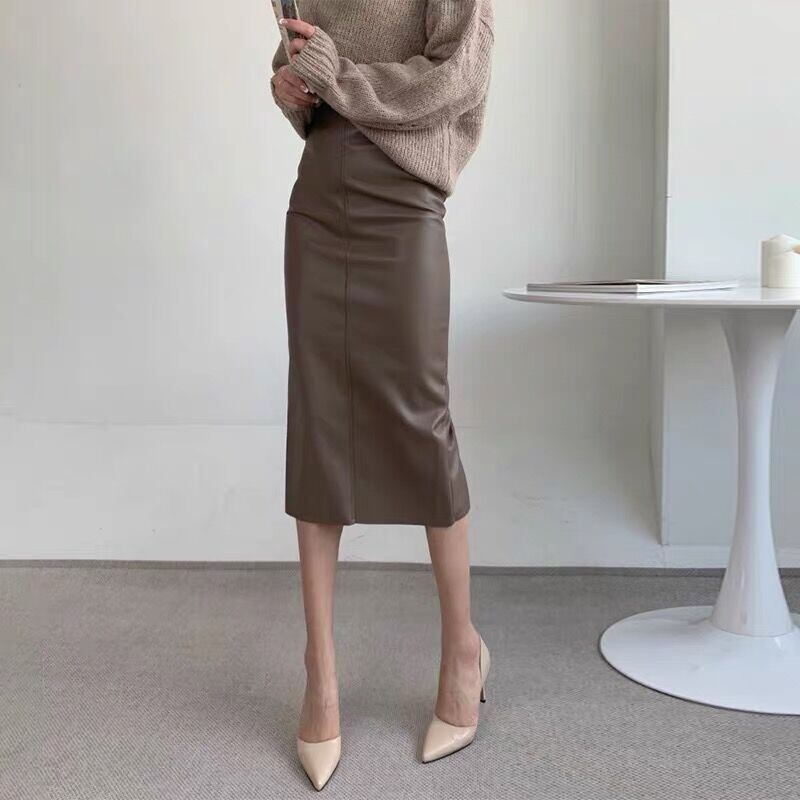 レザースカート スカート ボトムス ミドル丈 ストレート ハイウエスト レザー PU 大人可愛い きれいめ シンプル 大人 上品 おしゃれ お洒落 大人可愛い 大人女子 クール エレガント 無地 春 秋 20代 30代 40代 レディース OL 通勤 デート お出かけ 女子会 休日 レストラン 着回し 普段使い ファッション コーデ スタイル S M L 黒 ブラック 茶色 ブラウン